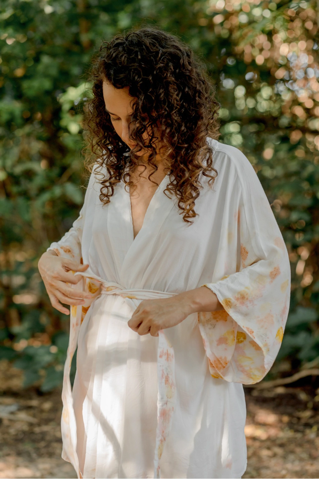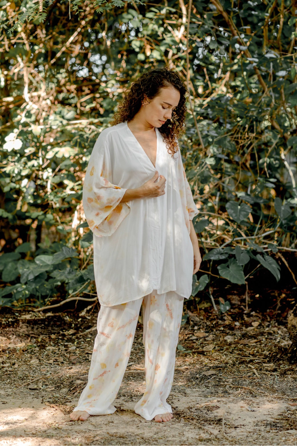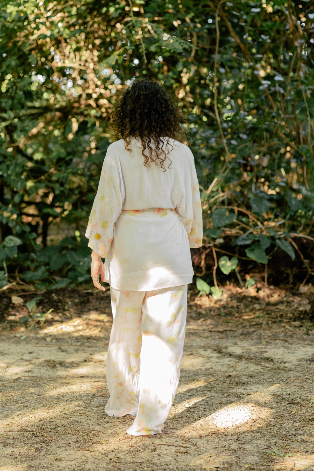 Quimono Urucum apresenta modelagem tamanho único, com forma ampla e tecido leve. A criação apresenta estampa aplicada nas mangas e na faixa que acompanha . O quimono foi criado compondo com faixa de mesmo tecido, podendo ser usada com a peça presa ou solta, sem a faixa. A estampa desenvolvida é fruto da parceria da Açude e Caxo Cria, onde a Estampa Botânica Urucum foi criada, usando urucum, casca de cebola e pétala de rosa nas cores.